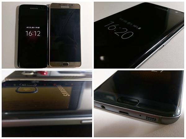 小編手上拿的是S7 edge,螢幕有5.5吋,和Note5的5.7吋螢幕兩隻體積大小比較起來,S7 edge的個頭雖小了點,但而且厚度與重量都比Note5還要輕薄,使得整體的握感相當的好!另外S7 edge的螢幕兩側有做曲面設計,是5.1吋的S7所沒有的。 S7延續S6的外型,老實說不仔細比較一時之間還分辨不出哪支是S6還是S7哩,但可以透過後鏡頭突起的高度略知一二,因為S7的鏡頭突出比較不明顯,至少不會像個小火山口一樣。