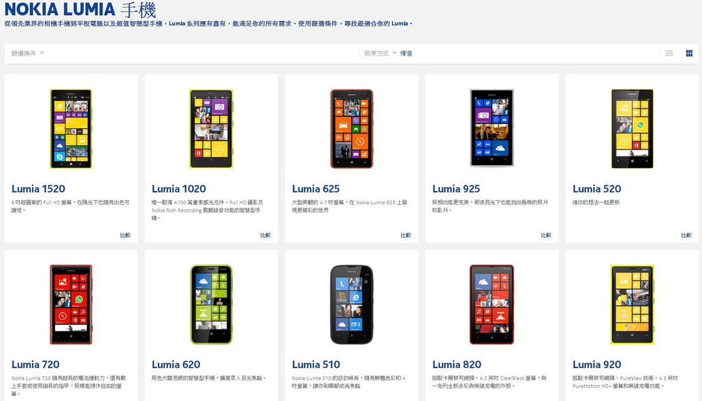 Nokia的Lumia手機特色是用色鮮艷大膽,也意味著Nokia雖是老字號卻也求新求變,非常吸引年輕人目光,每支Lumia手機的外型風格類似但識別度高,別人拿在手上遠遠一看也知道拿的是Lumia手機。