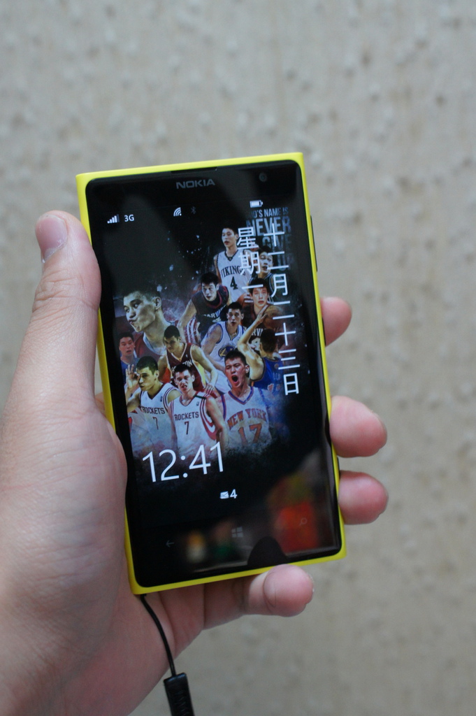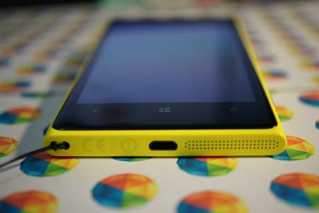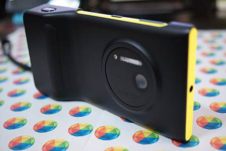 Lumia1020的螢幕採用的是4.5吋AMOLED螢幕,解析度為1280x768,像素密度PPI為334,以肉眼觀看已經算是相當細緻。機身材質為聚碳酸酯,有耐震抗髒與忠實還原CMYK(印刷四原色)亮眼純色的特性,而且觸感其實不錯,與New HTC One的金屬機身冰冷的凜冽感不同,可一手掌握與把玩。