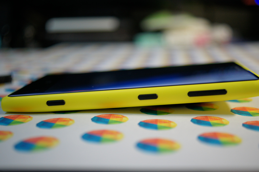 Lumia1020最大的特色就是背後突起來的黑黑大大圓圓,像極了OREO餅乾的相機設計,平放在桌上還會翹起來,但這裡頭的設計可是大有學問,因為Lumia1020擁有1/1.5吋,4100萬畫素感光元件,6枚蔡司鏡片還有氙氣閃光燈,第二代光學技術利用滾珠軸承的方式達到防手震的效果,擁有這麼強悍的規格技術厚度卻只增加了一點點,令人不得不佩服Nokia在照相手機的領域還是獨樹一格。(右側按鍵從左至右為照相快門鍵,電源鍵與音量鍵)