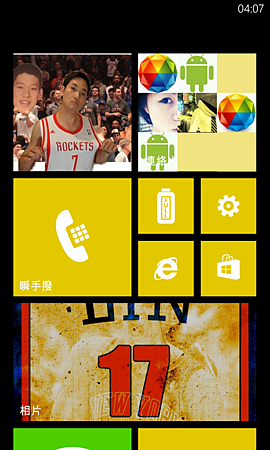 Windows Phone最大的特色就是屬於動態磚桌面了,除了鎖屏畫面外,就只有動態磚桌面與所有程式集了,對有些用習慣Android手機或是iPhone的人來說Windows Phone的介面似乎太簡約不夠華麗,但也有很多人反而喜歡這種清爽又一目瞭然的介面,只能說青菜蘿蔔各有所好,而我個人在使用上覺得還滿好上手的,簡單又直覺,重點是操作起來非常的流暢,這也是Windows Phone系統很強調的優勢之一。